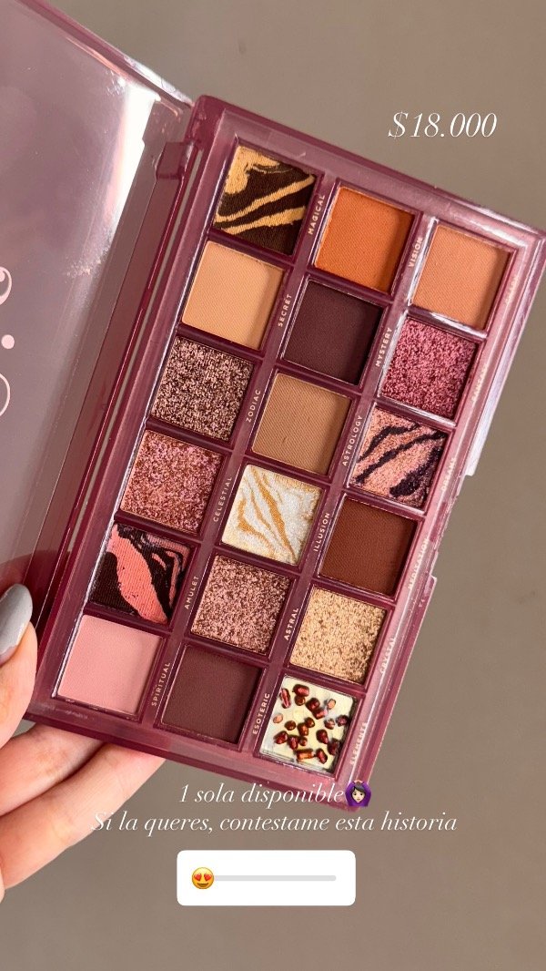 Contiene 8 tonos mate pigmentados y aterciopelados, 5 tonos metalizados, 4 tonos en mosaico y 1 sombra de ojos en gel.